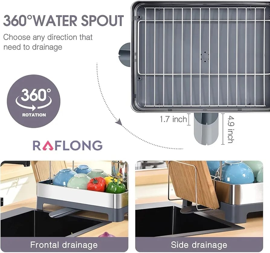 - 💧 Integrated Drainboard System with 360° rotation: Channels excess water directly off the counter for a cleaner, drier kitchen to anywhere as per your convenience (Rotatable)