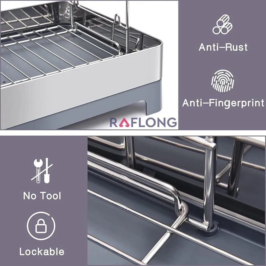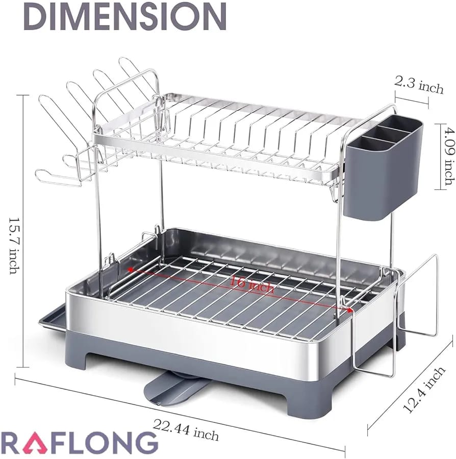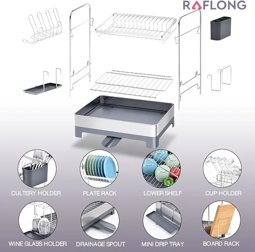 Raflong 2-Tier Dish Drying Rack | Rustproof | With Drainboard | Space-Saving